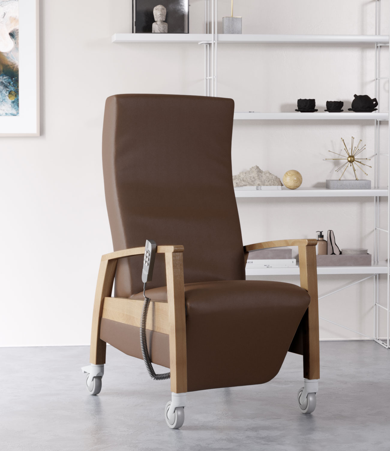 Les roulettes permettent aux personnes dépendantes de changer d’emplacement et de participer à la vie sociale à tout moment. Le fauteuil convient aux foyers privés comme aux maisons de retraite et cliniques.