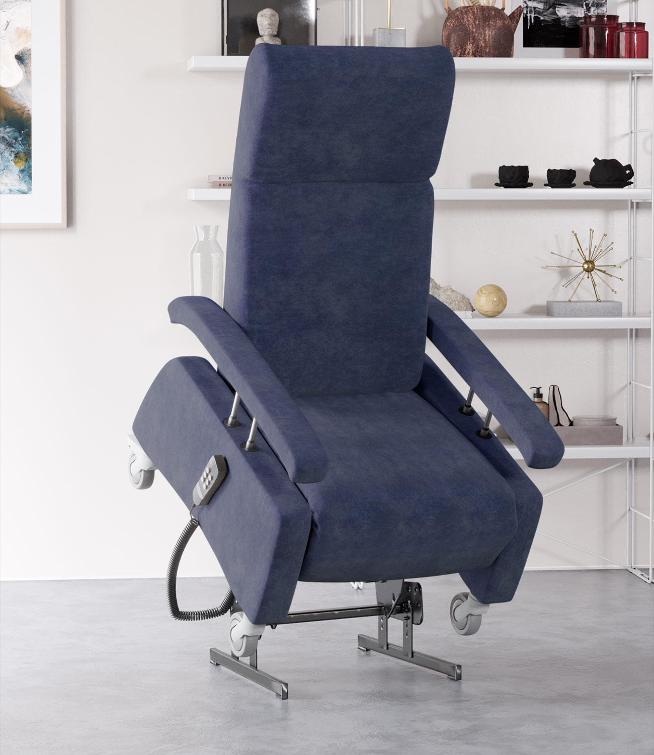 Le dossier et le repose-pieds se règlent indépendamment, permettant de surélever les jambes et de soulager le dos à tout moment. L’alimentation se fait par câble ou, en option, par batterie. Grâce à la télécommande, vous pouvez choisir en continu entre :