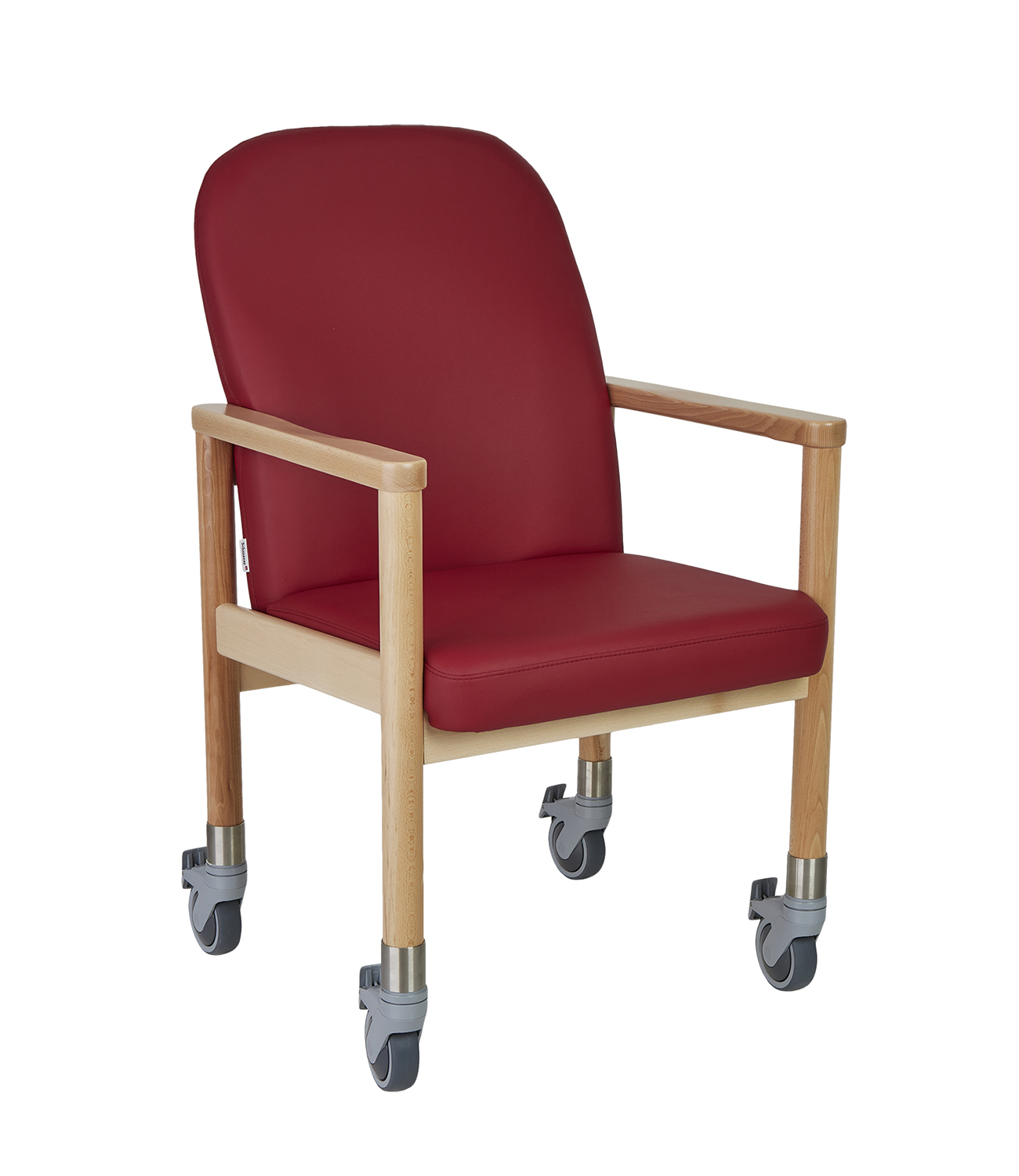 La chaise LÜBECK combine un design chaleureux en bois de hêtre avec des revêtements de qualité certifiés OEKO-TEX® STANDARD 100. Vous pouvez choisir entre une microfibre respirante ou un similicuir hygiénique, tous deux lavables, imperméables et optionnellement équipés d’une protection contre l’incontinence. Les accoudoirs en bois massif offrent une prise en main agréable et contribuent à la stabilité lors des transferts. Avec une capacité de charge jusqu’à 120 kg, ce fauteuil de soins à roulettes convient à un usage quotidien à domicile comme en EHPAD.