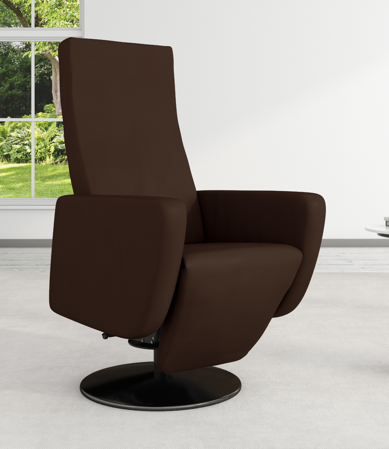 Le dossier et le repose-jambes du fauteuil relax RIMINI se règlent indépendamment l’un de l’autre. En version électrique, chaque position s’ajuste en continu à l’aide de la commande. En version manuelle, une légère pression du corps suffit pour adopter la position relax, puis le levier latéral permet d’incliner progressivement le dossier et de relever le repose-pieds jusqu’à la position horizontale.