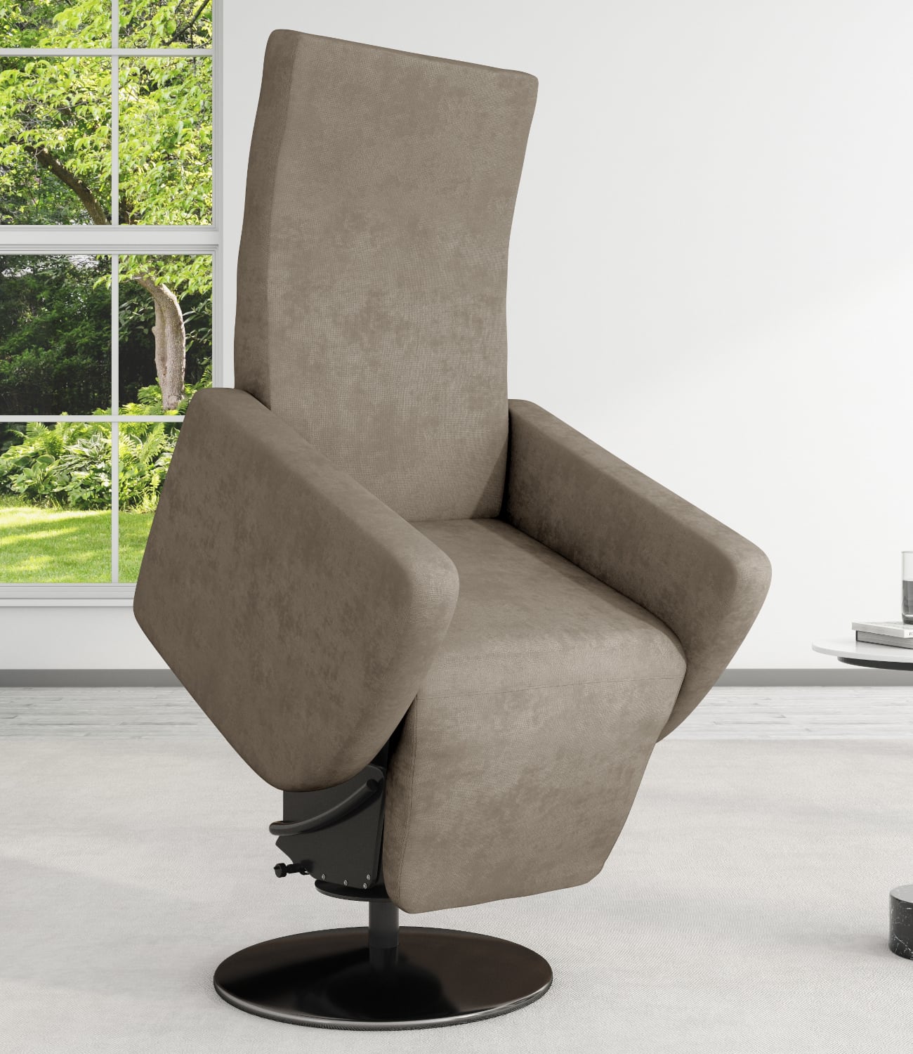 La hauteur et la profondeur d'assise du fauteuil releveur Rimini Lift peuvent être ajustées individuellement. Les clients peuvent choisir entre 44 cm, 47 cm et 50 cm pour la hauteur d'assise. La profondeur d'assise est disponible en 52 cm et 54 cm. De même, les positions d'assise peuvent être réglées en continu par 4 moteurs à l'aide d'une commande manuelle. L'alimentation électrique se fait par câble ou, en option, par batterie. Dans le Rimini Lift, les utilisateurs peuvent adopter une position assise droite, une position de balance cardiaque, une position allongée confortable ainsi qu'une position de relaxation par télécommande. L'assise et le dossier peuvent également être réglés séparément. On ne peut pas faire plus confortable.
